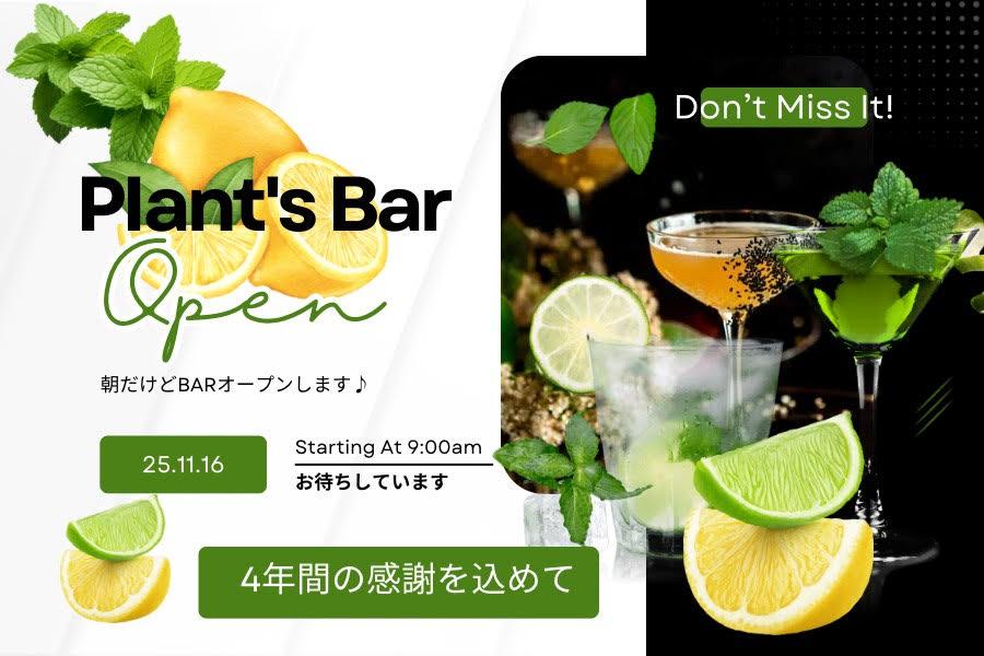 plants lover s は「plants BAR」として、これまで出会えた皆さんへ感謝を込めてBARをオープンします。